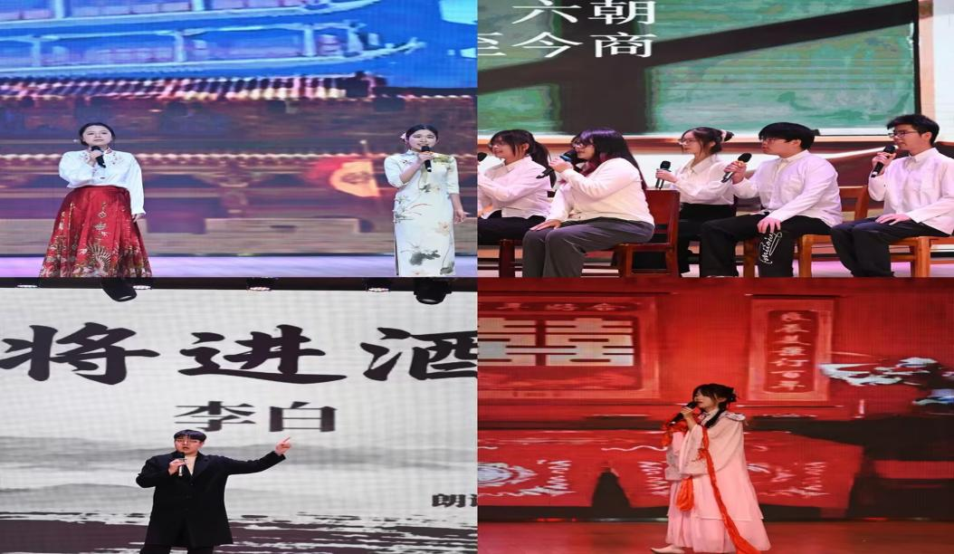 在比赛环节,来自各学院的14组决赛选手依次登台,各展风采。他们或慷慨激昂,或婉转深情,以标准的语音、精准的理解与饱满的舞台表现力,为现场观众呈现了一场高水准的视听盛宴。经评审,体育与健康学院的《大好河山寸土不让》、教育学院的《桂枝香·金陵怀古+桂枝香·江城新咏》及会计学院的《我的南方和北方》三组作品,凭借深刻的诠释、创新的编排与精湛的演绎,荣获大赛一等奖。此外,大赛还评选出二等奖5名、三等奖6名。