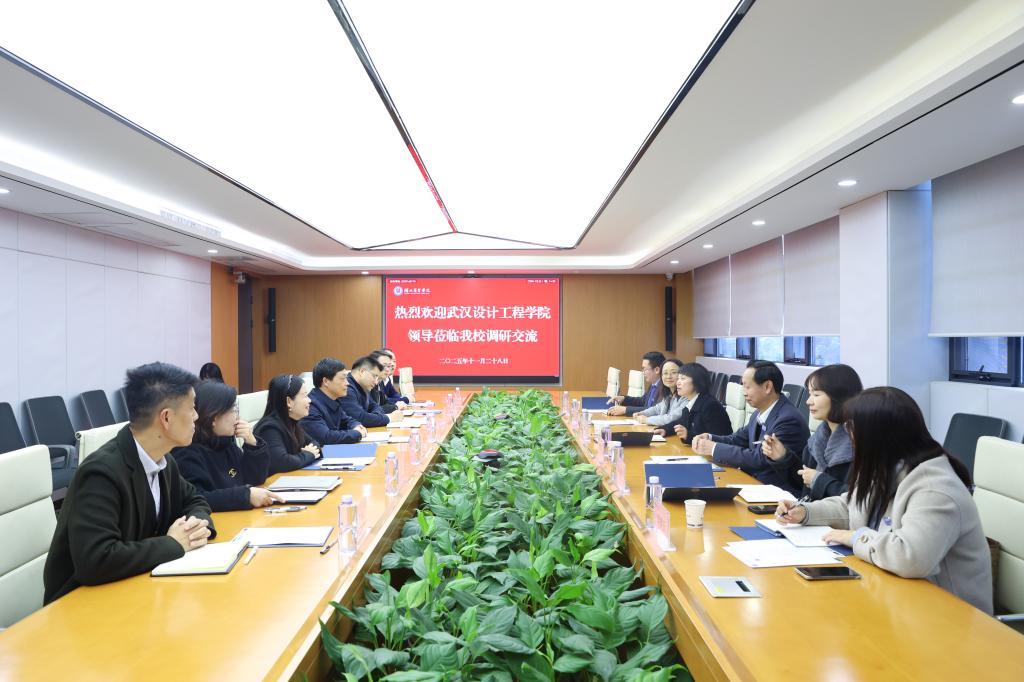 11月28日下午,武汉设计工程学院党委书记王长华一行前来我校调研交流,校党委书记杨世雄,副校长程胜军、陈靓秋及相关职能部门负责人在行政楼三楼会议室参会。座谈会由杨世雄主持。