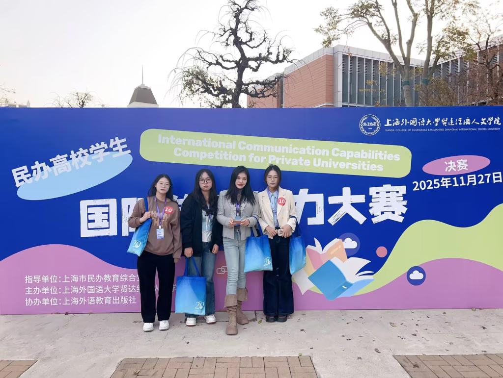 曾侯编钟鸣雅韵,荆楚学子展新声。11月27日,民办高校学生国际传播能力大赛全国总决赛在上海落下帷幕。在我校外国语学院教师王冯骏子、黄延康的悉心指导下,由刘艺、解琳莉、章冉怡三位同学组成的代表队荣获全国总决赛三等奖。