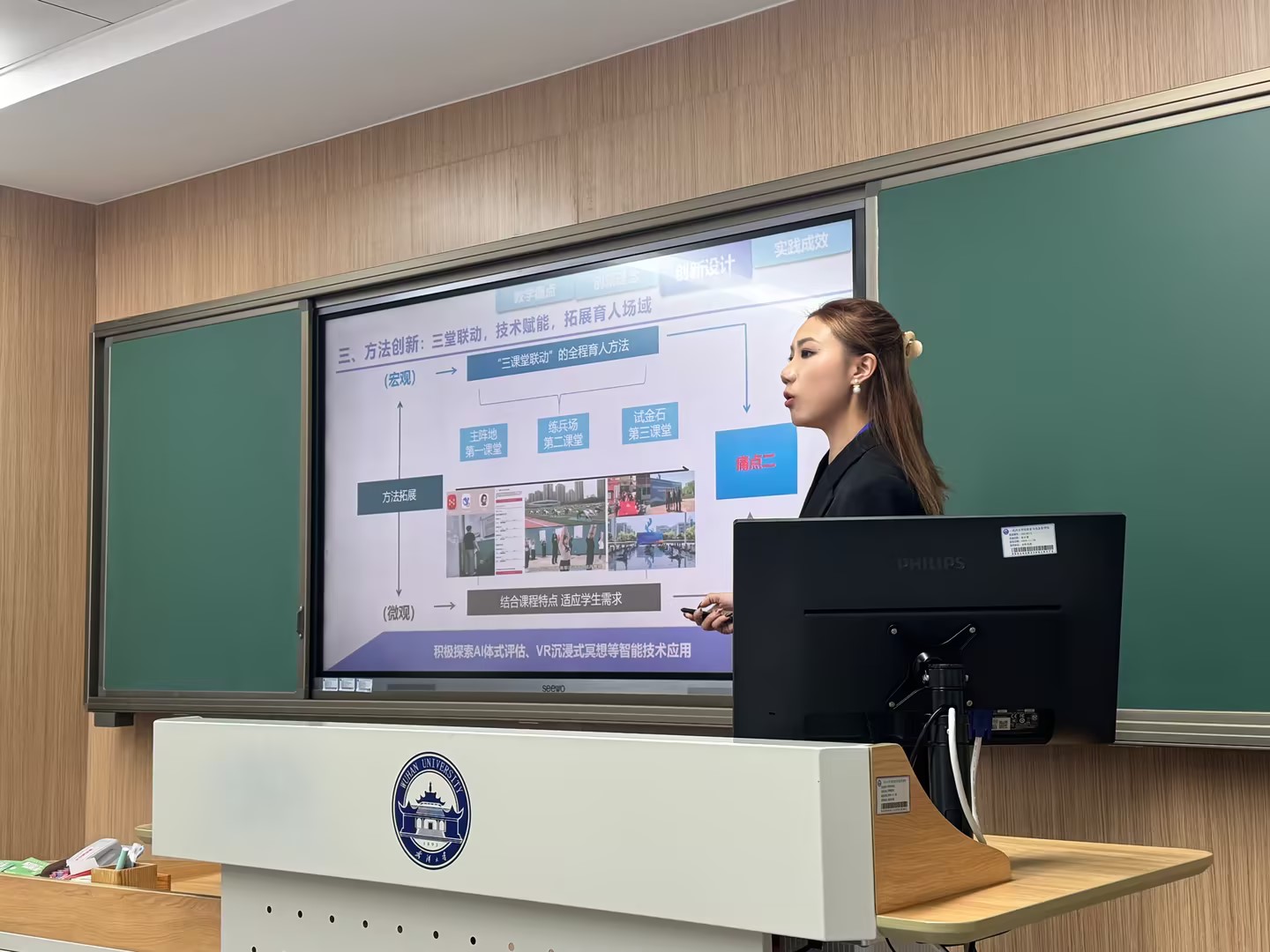 赛后,两位获奖教师分享了参赛感悟。她们表示,此次大赛既是对教学的锤炼,也是一次理念的碰撞与成长。李雨薇谈到,大学瑜伽课不仅是传授技能,更旨在传递健康生活方式。未来她将持续创新,让课堂更有温度,促进学生身心发展。李艳则认为,体育社会学是理解体育与社会关系的重要课程。她将在教学中进一步融入思政引领,兼顾专业深度与育人温度,助力学生夯实基础、提升素养。