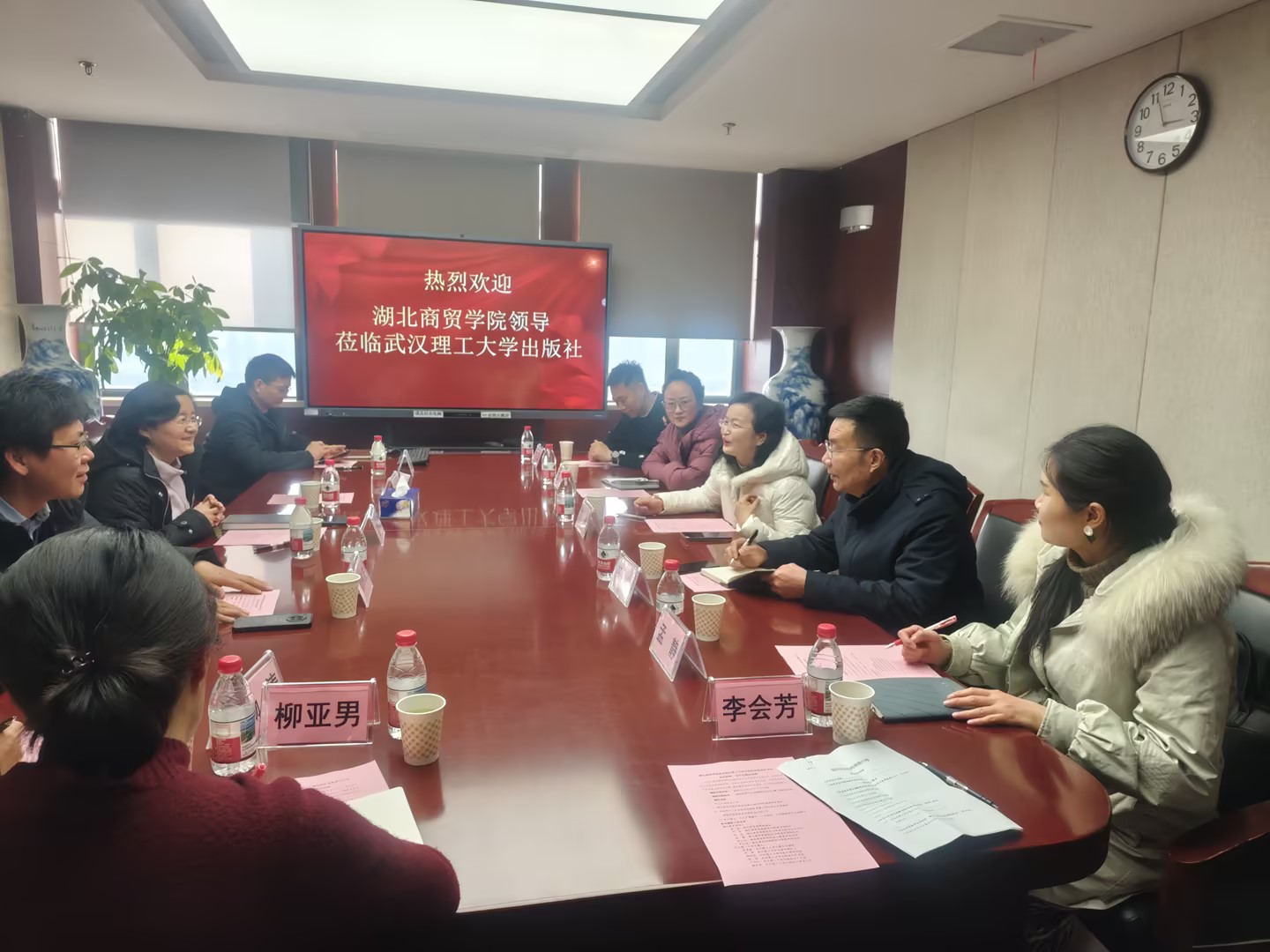 在武汉理工大学出版社,学校调研组围绕“实习就业合作、教学科研共建、文创产品赋能”三大方向,与出版社就新媒体运营、市场营销等岗位需求深度对接。双方就岗位设置、实训安排、就业标准等达成多项共识,为网络与新媒体、市场营销等专业学生拓展高质量就业通道。